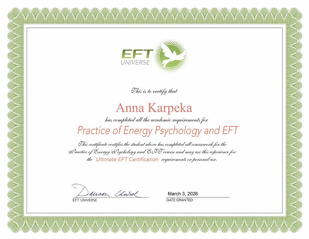 Думаю, что я попробовала почти все, что есть на рынке. Я изучала НЛП, Эннеаграмму, тета-хилинг, кинезиологию, техники по работе с эмоциями и травмами RPT, EFT, STT, Access consciousness, системные расстановки, Дизайн человека, Архетипический портрет, гипноз и Закон притяжения.